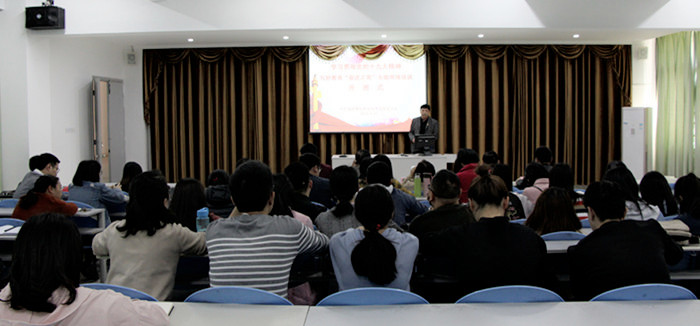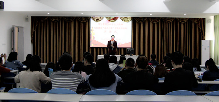 根据省委教育工委通知要求,学院党委决定举办“学习贯彻党的十九大精神 写好教育‘奋进之笔’”专题网络培训班。4月17日下午,在综合楼阶梯二教室举行开班式,院党委书记陈宝龙出席并讲话,开班式由党委副书记刘鹏主持,党委委员杨光舟、周建鹰、肖熙出席,来自各支部共56名教职工党员参加了开班式。