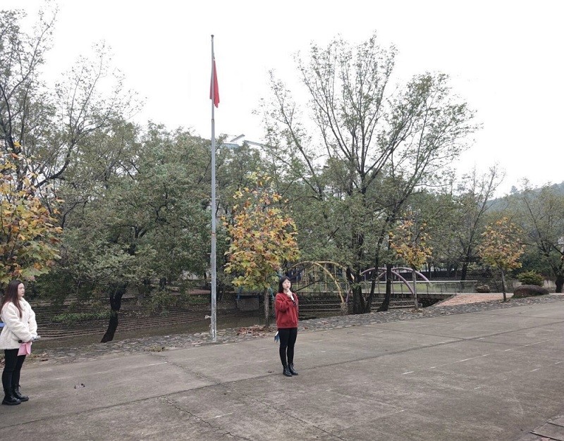 上午6:50经济管理系全体成员在后山操场等候,7点整主持人宣布升旗仪式正式开始。迎着朝阳,国旗护卫队的队员们迈着铿锵的步伐来到了国旗台下,全场一片肃静。随着旗手准备工作完成,《义勇军进行曲》响起,全体师生面向国旗庄严肃立,行注目礼。伴随着庄严激昂的国歌,五星红旗冉冉升起。