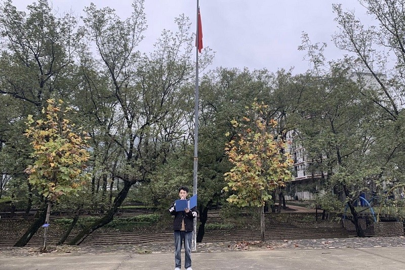 升旗完毕后,首先经济管理系学生会主席黄宏鑫作为学生代表做国旗下讲话。他寄语我们新时代大学生应该热爱祖国,坚持中国共产党的领导,努力学习、认真完成任务、有爱心、责任心,也希望同学们立志做一个积极向上的、优秀的新时代青年。