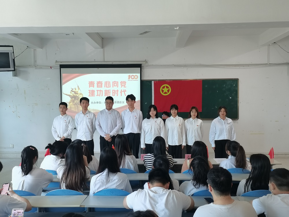 今天是中国共产党的助手和后备军——中国共产主义青年团,迎来了成立一百周年的日子。党领导团前进,团紧跟党奋斗。一百年来,中国共产党领导中华民族复兴伟业劈波斩浪、壮丽远航,中国共青团团结带领一代代中国青年奋楫争先,书写了无上的青春荣光。特此,我系团总支于2022年5月5日在227教室开展了“青春心向党,建功新时代”重温入团誓词、接收新团员、团史学习教育系列团日活动。