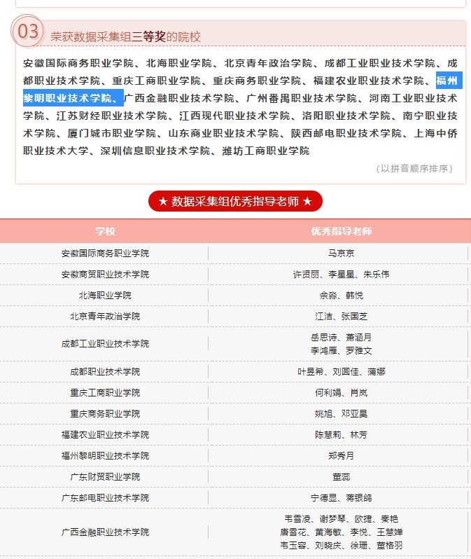 近日,由商业会计学会主办、中国湖北经济学院和深圳希施玛数据科技有限公司承办的2022年第一届全国财经大数据处理综合技能竞赛全国赛圆满落幕。本次赛事共有来自全国30个省、市、自治区及海外地区,338所院校,2306支队伍参赛。经过激烈的角逐,我系21金融服务与管理1班郭鑫慧、刘燕、郑美旋团队,21金融服务与管理1班潘巧玲、吴鲤萍、黄佳瑜团队分别获得数据分析组别“全国二等奖”的好成绩。21金融服务与管理1班陈春尧、汤玉婷、21金融服务与管理2班兰梦飞团队获得数据分析组别“全国三等奖”的好成绩。其中郭鑫慧、刘燕、郑美旋团队更是以高职组全省第一名的好成绩成功入围全国16强冠军邀请赛,为校争光!我系郑秀月老师也因出色的指导在本次赛事中获得“优秀指导老师奖”。