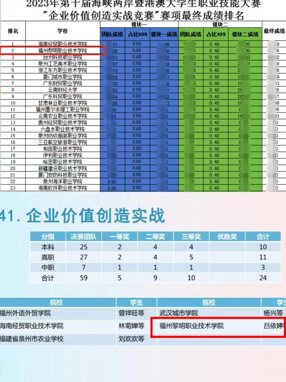由福建省教育厅,福建省人力资源和社会保障厅、福建省互联网信息办公室、平潭综合实验区管理委员会主办的第十届海峡两岸暨港澳大学生职业技能大赛“企业价值创造实战竞赛"于2023年11月4日下午16时圆满落幕。经过层层选拔,来自全国各地的中职组、高职组、本科组59所院校、共计236名选手在决赛现场展开激烈角逐。我院经济管理系杨建霞老师、梁燕燕老师带领4名来自22级大数据与会计专业的学生吕依婷、苏思婷、郑佳欣、何李月参赛,荣获高职组团体赛一等奖!