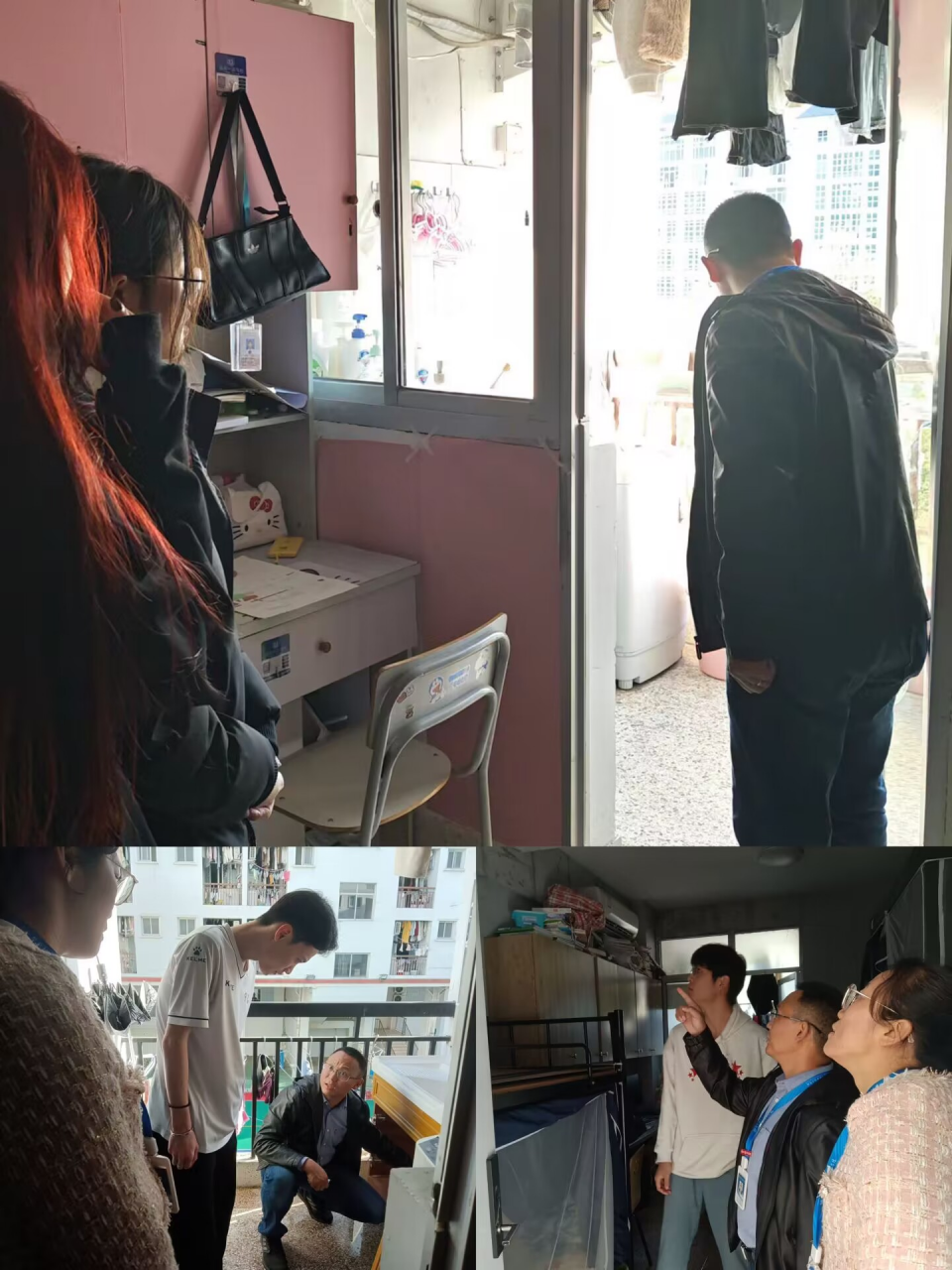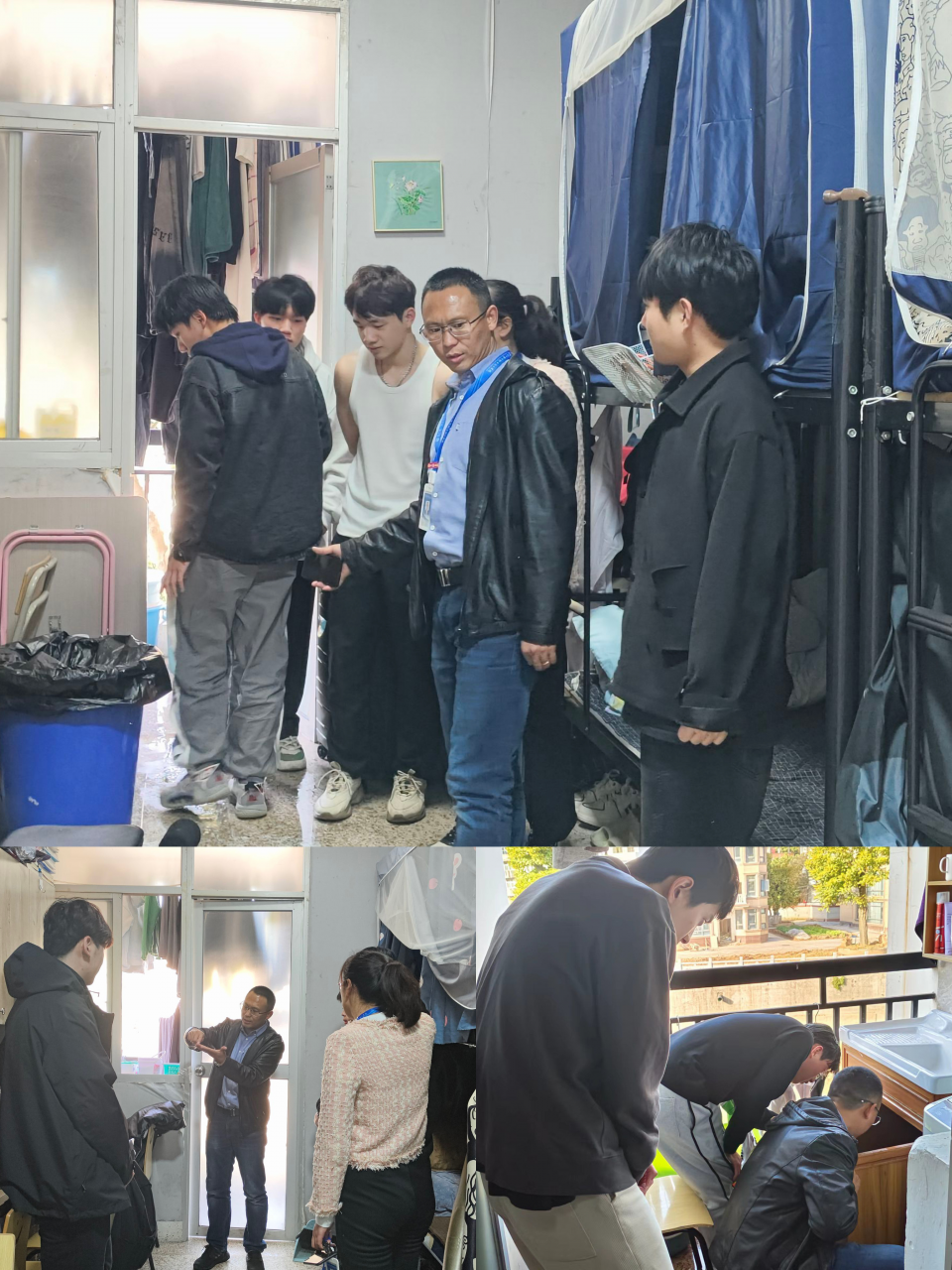 在走访的过程中,刘主任与孙书记仔细查看了基础设施,环境卫生并亲切地问候学生,详细了解寝室门窗是否损坏、空调能否正常使用、桌子是否存在问题及热水是否能够使用等相关情况,并叮嘱学生如有异常按照宿舍报修流程进行报修,同时提醒同学们注意用电安全和电信诈骗。实时为同学们答疑解惑并提出宝贵的介意,在日常生活中,还要大家积极倡导文明行为,一起努力共建文明校园。