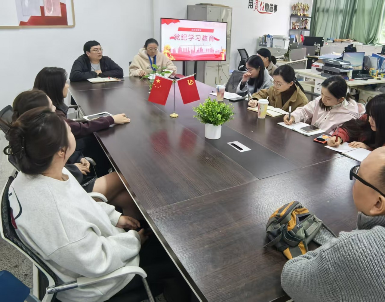 11月19日下午,经济管理系组织全体教师在系部办公室召开专题学习会议,深入学习领会上级领导关于全面从严治党、加强师德师风建设的重要讲话精神,聚焦党纪学习教育要求,部署系部党风廉政建设工作。