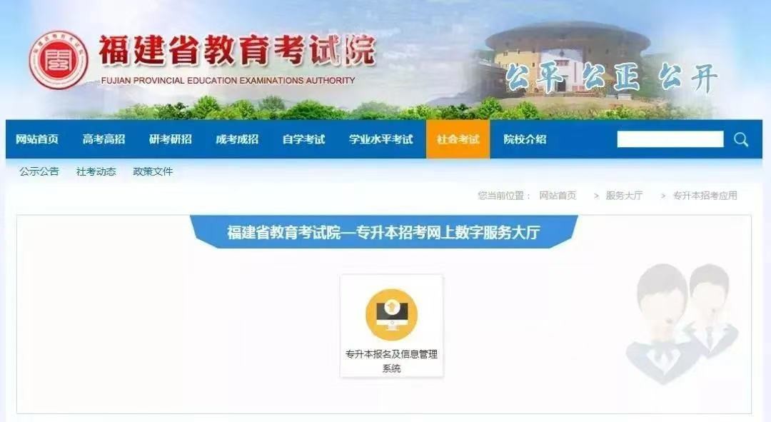 在网站首页找到“福建省普通高校专升本考试报名系统”入口,点击进入。