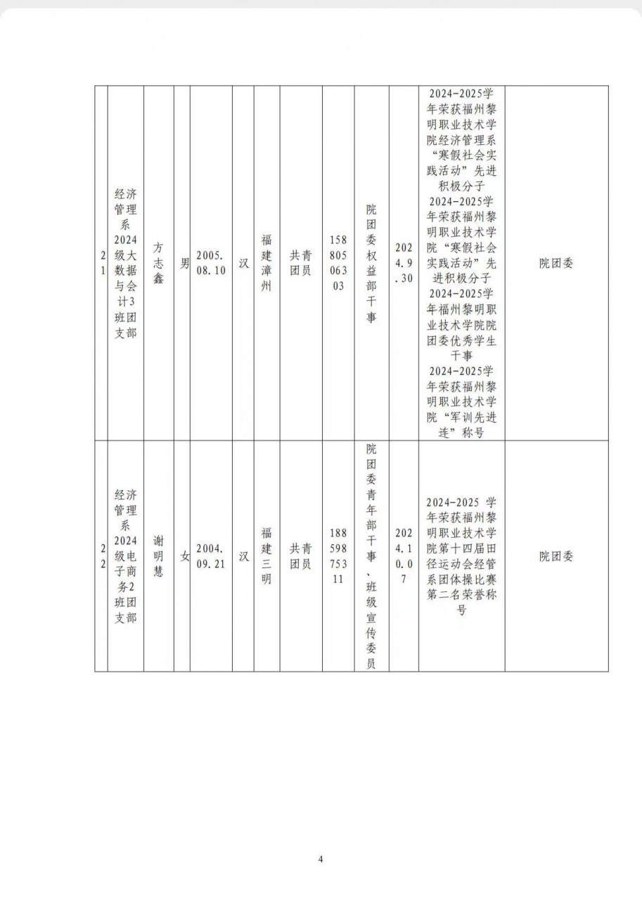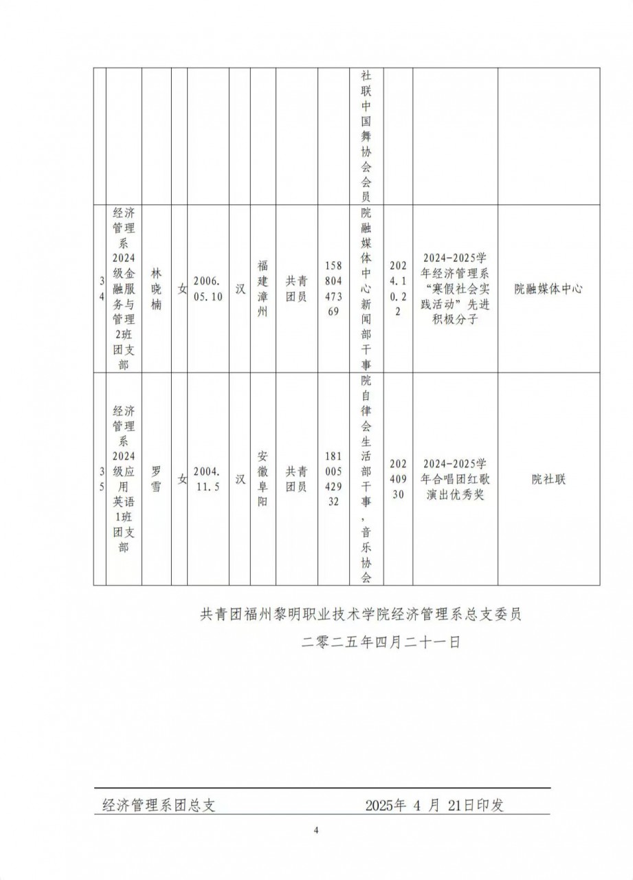 共青团福州黎明职业技术学院经济管理系总支委员会文件