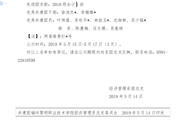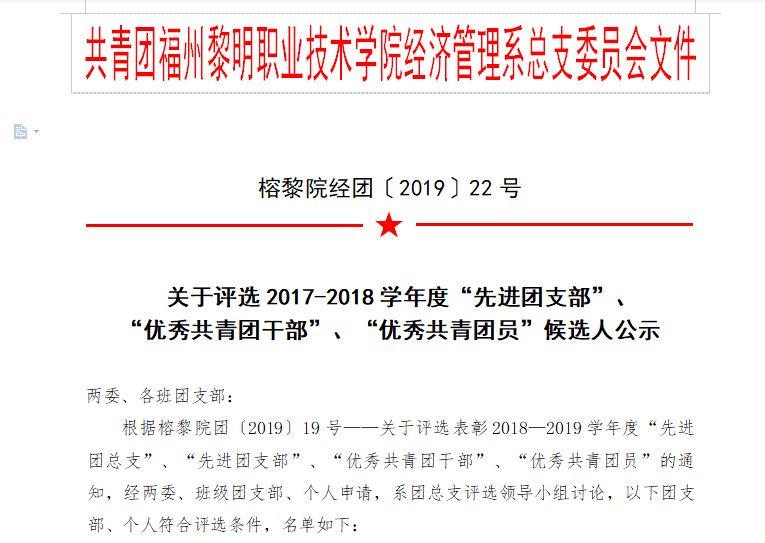关于评选2017-2018学年度“先进团支部”、 “优秀共青团干部”、“优秀共青团员”候选人公示
