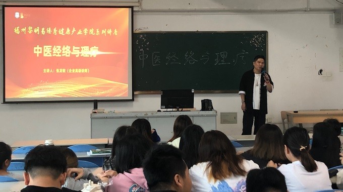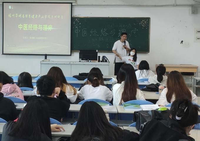 2022年5月12日,健康产业学院副院长何梦娟携同张发敏医师来到我院地球村校区,在综合楼阶梯五教室,为药学系20级健康管理班和20级药品经营与管理2班的同学,开展“中医经络与理疗”主题讲座。讲座由郑爱清书记主持,张发敏医生主讲。