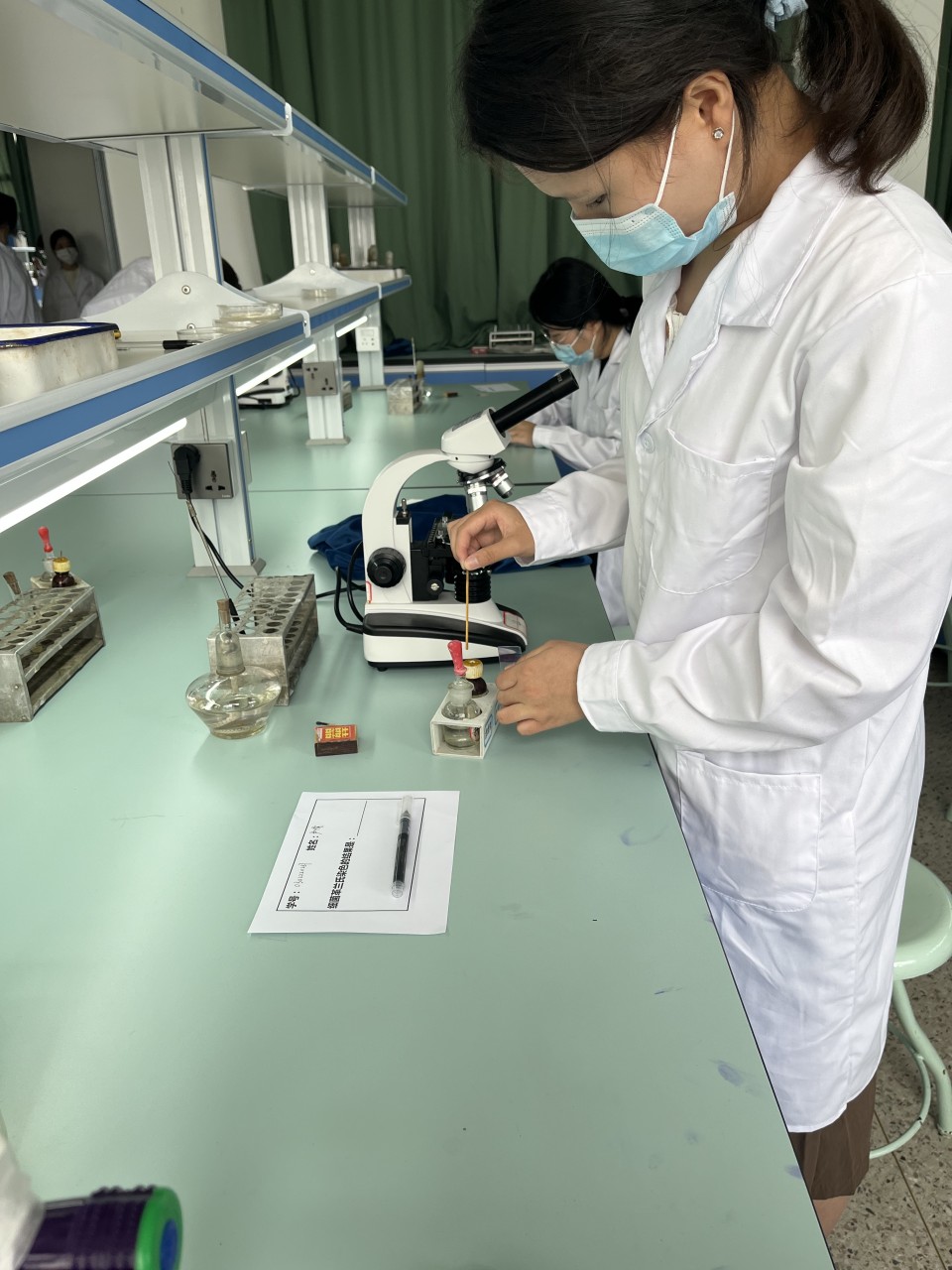 2023年5月16日,我们迎来了福州黎明职业技术学院2023年学生职业技能大赛。药学系2021级食品营养与检测、2022级药品经营与管理和2021级健康管理一共16个同学参加“细菌的革兰氏染色”项目。本项目从早上9点在新教学楼第三实验室微生物实验室准时开始,一共分成4组,每组比赛时间是20分钟。“细菌的革兰氏染色”的步骤包括:准备→接种环灭菌→取菌涂片→干燥→固定→结晶紫初染1min→水洗→碘液媒染1min→水洗→酒精脱色30s→水洗→番红复染1~2min→水洗→干燥→镜检→载玻片的摆放→观察操作→显微镜清洗→结果报告。在制片过程中,学生需要做到严格无菌操作。实验过程中,需要注意的细节的点比较多,同学们都在尽自己的所能,做好实验的每个步骤,不仅赛出了风格,也赛出了水平。