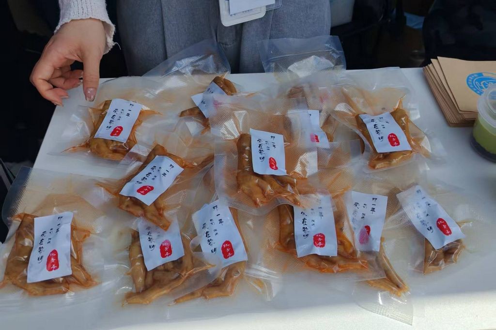 由肖龙英老师指导,黄静怡、李淑真、温玉兰、李硕四名学生制作的手工网红柠檬鸡爪,凭借其自研的蒜蓉、酸辣、泰式三种独特口味在众展示项目中脱颖而出。她们充分发挥专业优势,从原料的精选、食材的卫生处理、调味的精准配比、秘制腌制到最终的精美包装,每一步都凝聚了项目成员的心血与汗水。