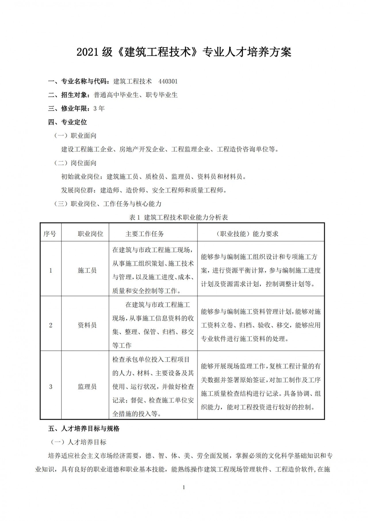 2021 级《建筑工程技术》专业人才培养方案