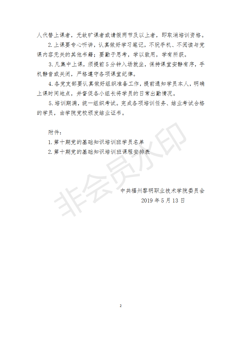 关于举办第十期党的基础知识培训班的通知