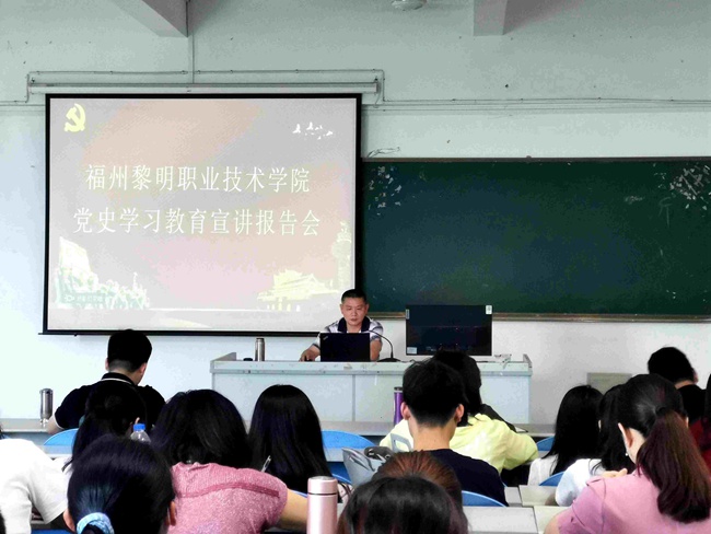 2021年5月11日下午,学院党委书记陈建国深入职能部门、系部,以《感悟党的百年光辉历程、汲取前进的智慧和力量》为主题,为党员、教职工作党史学习教育宣讲报告。