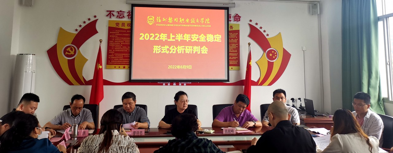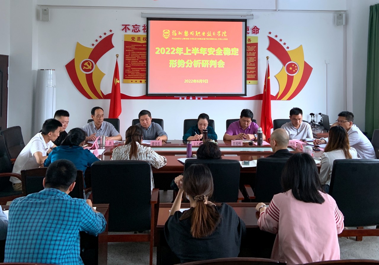 6月9日上午,学院在地球村校区五楼会议室召开2022年上半年安全稳定形势分析研判会,学院董事长王苏华,院长范超峰,党委书记廖诗忠,副院长杨光舟、魏洪,董事长助理刘鹏、陈玉池,学院董事肖熙,各总支(支部)书记、各系(部门)主要负责人参加会议。会议由党委副书记王新华主持。