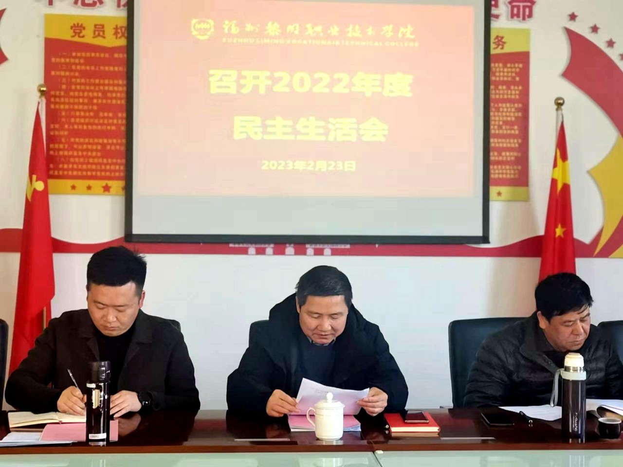 2023年2月23日上午9点,我院党委在五楼会议室召开2022年度民主生活会。学院党委委员参加此次会议,会议由党委书记廖诗忠同志主持。
