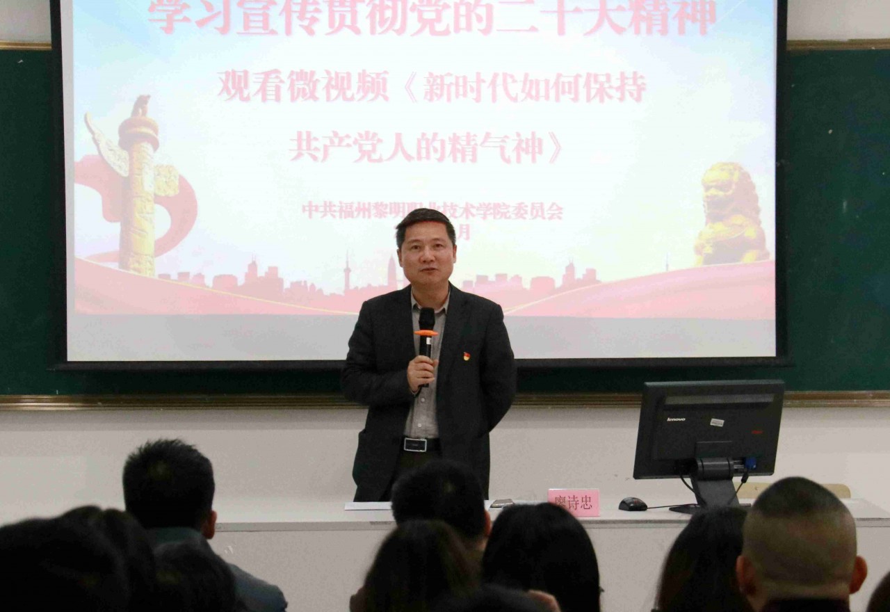 为深入学习宣传贯彻党的二十大精神,奋进新征程、建功新时代,加快推进学院思想政治教育建设,学院党委于4月25日下午在阶梯教室二开展《新时代如何保持共产党人的精气神》专题党课学习活动。党委书记廖诗忠主持,学院领导班子成员及全体党员教职工参加。
