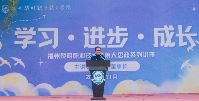 为深入学习贯彻习近平新时代中国特色社会主义思想主题教育,坚持立德树人根本任务不动摇,践行“爱的教育”育人理念,进一步引导学生了解“爱的教育”办学特色,增强归属感、认同感和荣誉感,11月29日上午,我院在后山操场举办了大思政课专题讲座,学院董事长王苏华女士作了“学习·进步·成长”的专题报告。学院党政领导班子成员、有关处室负责人、各党支部书记、全体政工干部及2023级新生共同聆听讲座。讲座由学生工作部(处)部长陈伟伟主持。