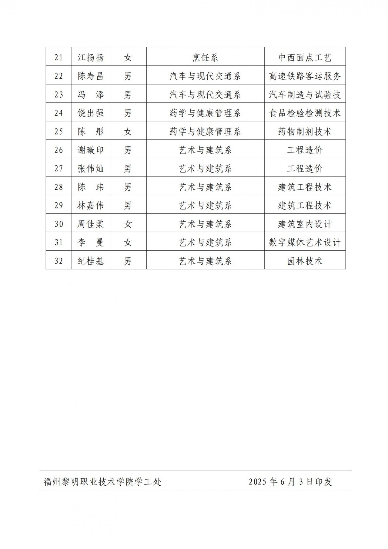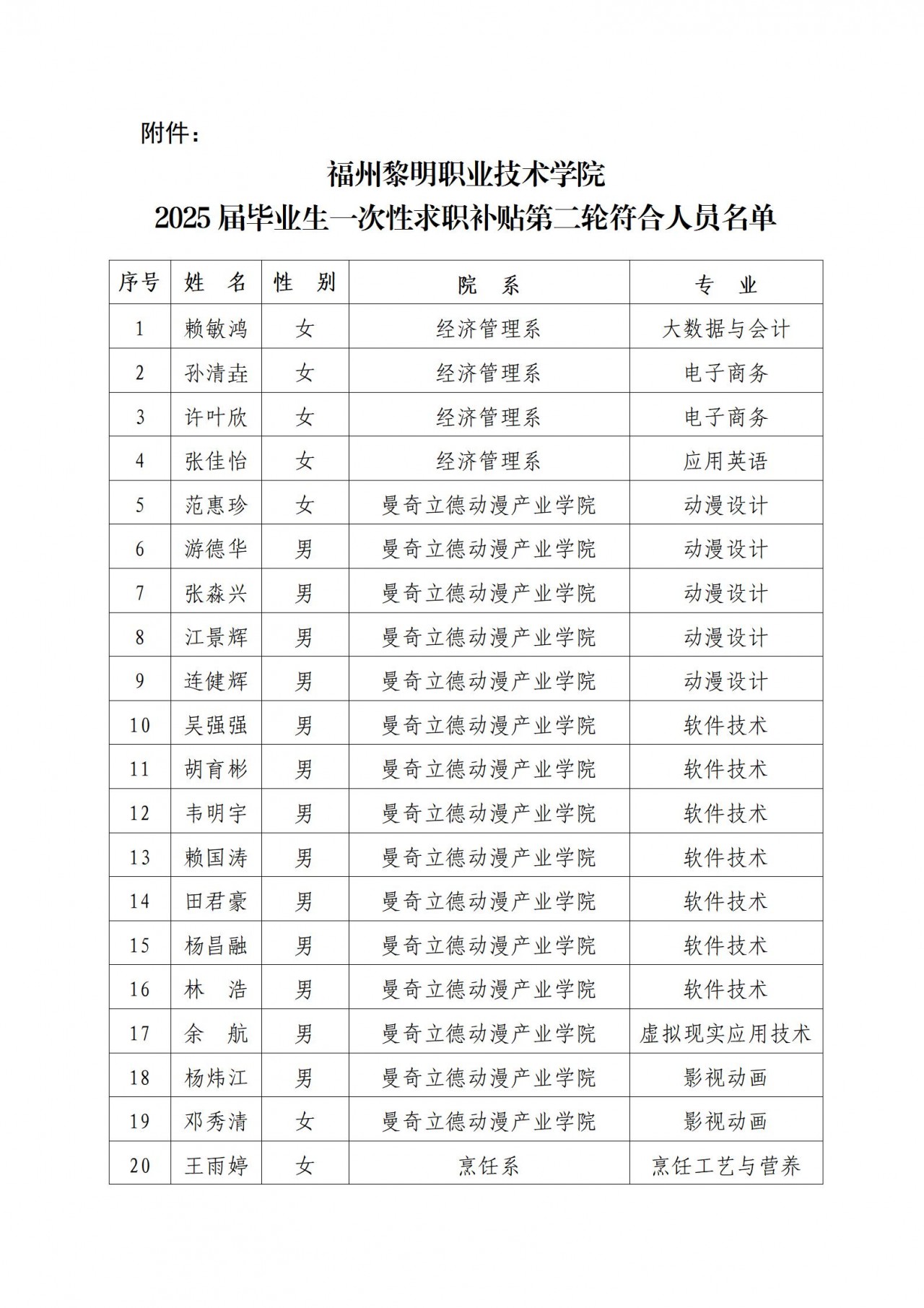 关于赖敏鸿等32名同学通过2025届毕业生一次性求职补贴第二轮符合人员名单的公示